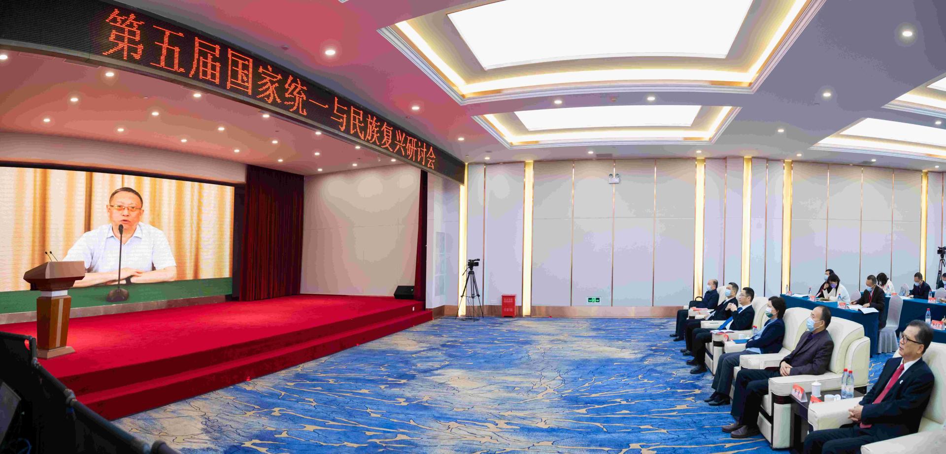 郑建邦在视频讲话中指出,本届研讨会以新时代中国共产党解决台湾问题的总体方略为指导,深入探讨如何在新时代进一步丰富发展国家统一理论,前瞻国家统一后的制度性安排与治理模式,寻求推动两岸关系由对立向融合转变的新路径,充分体现会议组织方与参会学者的历史责任感和使命感。当前正处于实现中华民族伟大复兴的关键时期,要充分认识到,国家富强、民族兴盛、社会进步无不以祖国统一为前提;“和平统一、一国两制”充分彰显了和平、民主、善意与共赢价值;和平发展与深化融合是造福两岸同胞的康庄大道。中国拥有实现统一的雄厚基础、充足条件、强大能力,能更为自信地、坚定地按照自己的规划和节奏来实现祖国完全统一,共创祖国统一的历史伟业,共享民族复兴的伟大荣光。