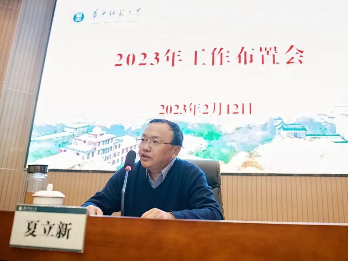 夏立新强调,2023年是全面贯彻落实党的二十大精神开局之年,是120周年校庆之年,是学校事业发展承上启下的关键之年。党的二十大首次把教育、科技、人才进行“三位一体”统筹安排,赋予教育新的战略地位和历史使命。我们要“跳出华师看华师”“跳出当下看未来”,积极抢抓教育强国、教育数字化转型、教育优先发展、教师教育振兴等叠加机遇,在谋势中抢占先机,在求变中开拓新局。要以“开局就是决战、起步就是冲刺”的精神状态,满怀信心、同心同德,苦干实干、奋勇前进,全面加快学校高质量发展,全面建设教师教育领先的世界一流大学,以优异的成绩迎接建校120周年。