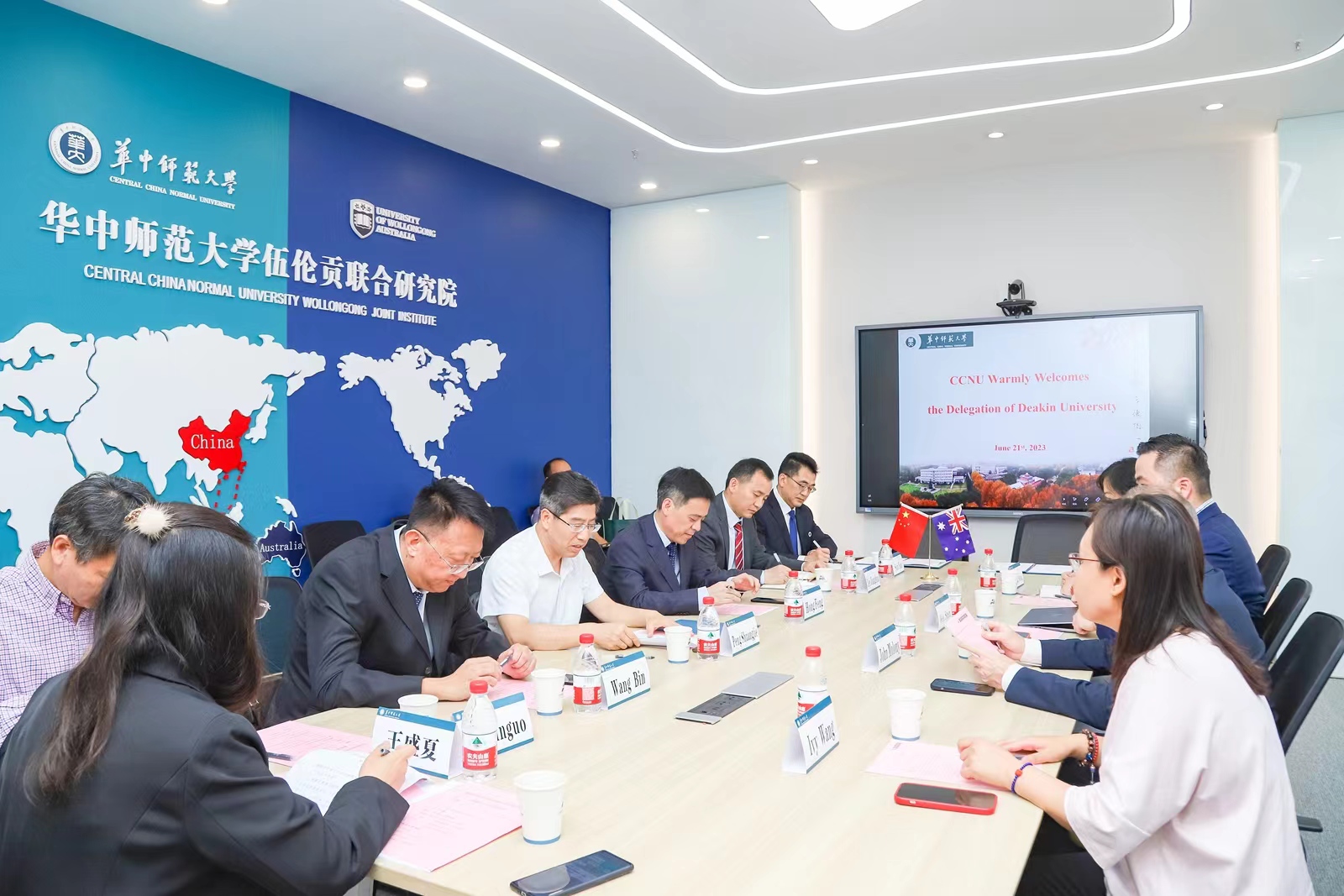 华大在线讯(通讯员 王盛夏)06月21日,澳大利亚迪肯大学副校长约翰·莫罗尼(John Molony)教授率团访问我校,副校长彭双阶会见代表团一行。国际合作与交流处、教育学院、体育学院、国际文化交流学院、伍伦贡联合研究院等相关单位负责人参加座谈。
