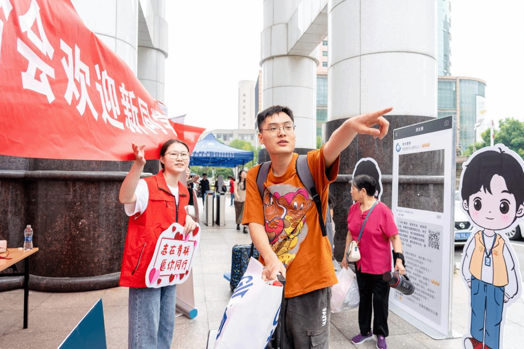 “暖心服务”体现“爱在华师”。身穿红色马甲志愿者的身影在武汉市 “三站一场”以及桂子山上随处可见。学校、各培养单位均安排学生志愿者,面向新生提供“一对一”志愿服务,到校后在引导下依次完成报到流程、物资领取、寝室入住等全部流程。报到当天,校园内设立了7个志愿服务站点,为新生提供道路引导等帮助。同时,学校在“三站一场”安排迎新专车,负责接送新生及家长到校,桂子山和南湖校区迎新点也配备了转运车辆,方便学生搬运行李。
