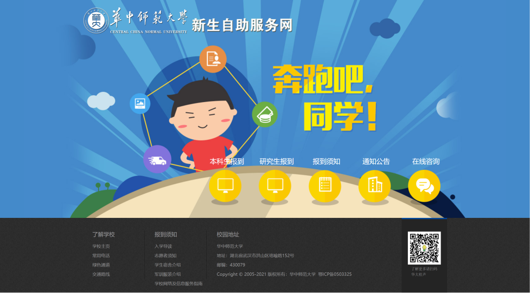 “智慧迎新”赋能“数字华师”。为方便新生报到,全体本科生、研究生新生继续实施“云报到”。在正式开学前,全体新生已通过“新生自助报到系统”办理了“宿舍选取”“信息采集”等多项业务,购买物品直接由学校配送至学生床位,学生线下报到时基本实现“拎包入住”。此外,学生线下报到时,迎新大屏也会实时显示报到数据。