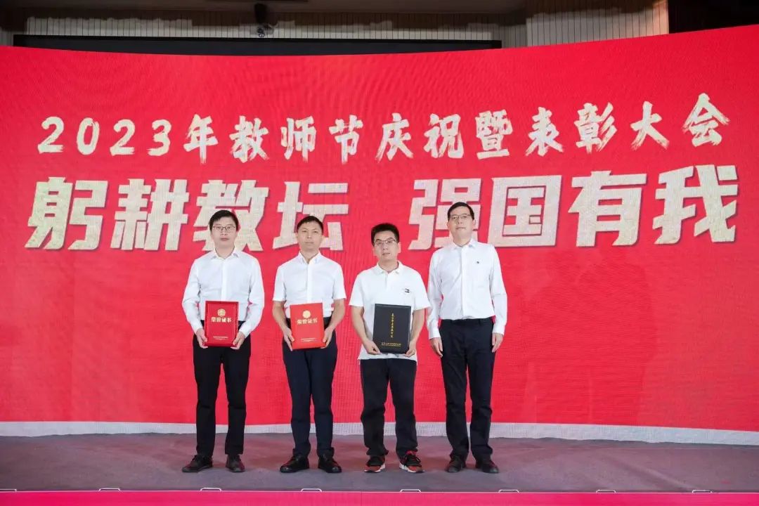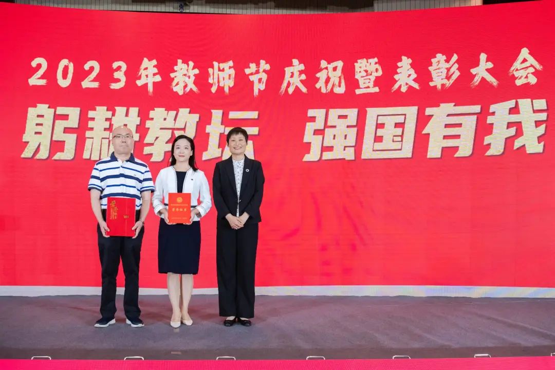 校领导为从教三十年教职员工代表颁发荣誉证书