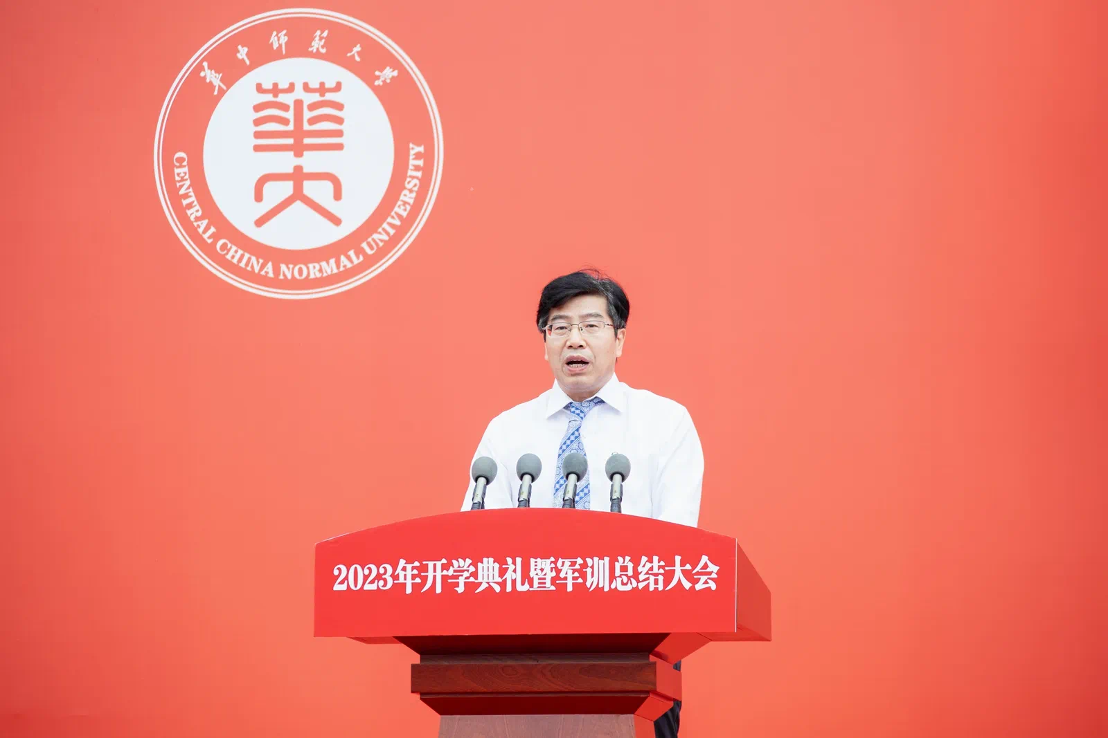 校长郝芳华代表全校师生员工向全体2023级新生表示热烈欢迎。在题为《以教育家精神涵养成才之路》的讲话中,郝芳华回顾了华师120年“振兴师范教育、培育祖国栋梁”的发展历程,将华师学子成长发展的奋进方向与习近平总书记提到的“大力弘扬教育家精神”紧密结合,叮嘱同学们“始终牢记习近平总书记的重要嘱托,以教育家精神为炬,用教育家精神涵养成才之路”。