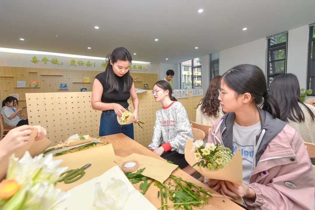 体验完花艺DIY的外国语学院2022级本科生张文晴告诉记者:“插花区域布置得很温馨,还有专业的老师教我们插花。我很喜欢这样的活动。希望今后社区能够增加更多实用设施、提供更多优质服务。”