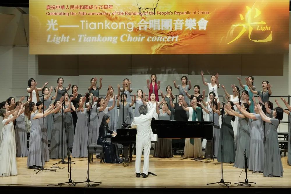 “月儿弯弯的海港,夜色深深灯火闪亮,东方之珠整夜未眠,守着沧海桑田变幻的诺言,让海风吹拂了五千年……”演出最后,Tiankong合唱团与香港理工大学合唱团共同倾情演绎的《东方之珠》,将音乐会气氛推向高潮。