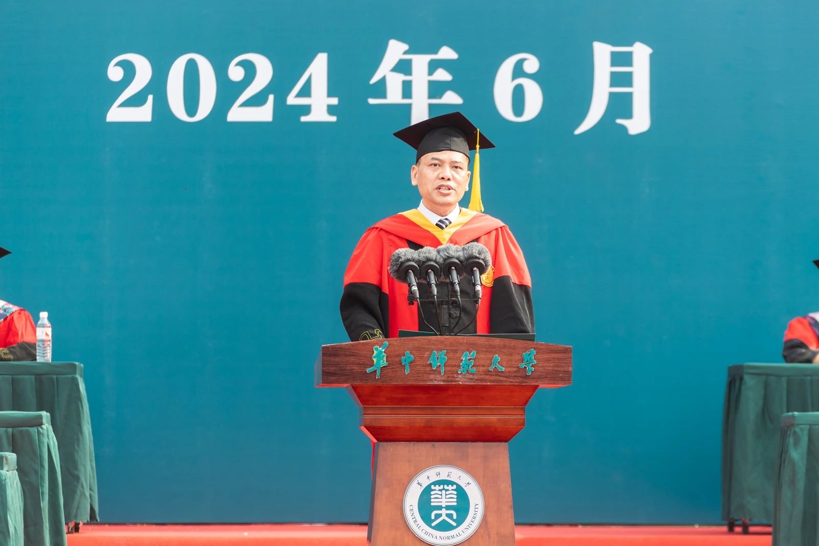 华大在线讯(通讯员 舒佳欣)6月18日,我校2024年毕业典礼暨学位授予仪式在佑铭体育场举行。校党委书记夏立新、校长彭双阶、校党委副书记查道林、副校长彭南生,校党委副书记、纪委书记刘继文以及学校学术委员会代表、教师代表、校友代表、各职能部门和学院负责人出席,与家长代表共同见证8757名2024届毕业生圆满完成学业,为同学们开启未来的追光逐梦之旅践行。典礼由校党委副书记陈迪明主持。