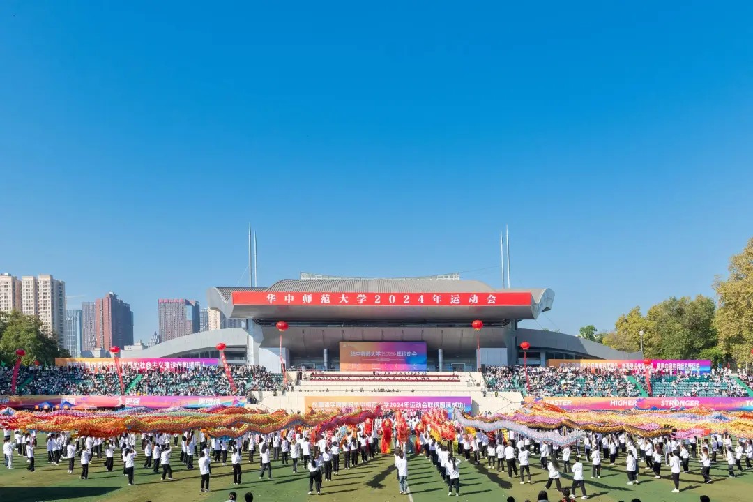 彭双阶在讲话中表示,近年来学校体育教育、群众体育、竞技体育建设稳步发展。学校始终坚持“健康第一”的教育理念,深入推进“五育并举”,致力于将教育家精神融入体育教育全过程。通过丰富体育课程、完善体育设施、优化体育师资,形成“月月有大赛、周周有小赛、天天有锻炼活动”的体育活动体系,提升学生运动素养,丰富教职工的业余生活,为学校高质量发展打下坚实的健康基础。在竞技体育方面,以陈佳鹏、刘德助等为代表的华师健儿在国内外赛场屡创佳绩,为学校增光添彩。彭双阶号召全体师生以此次运动会为契机,进一步弘扬体育精神,将“爱华师,爱体育”融入校园文化,为体育强国梦贡献华师力量。