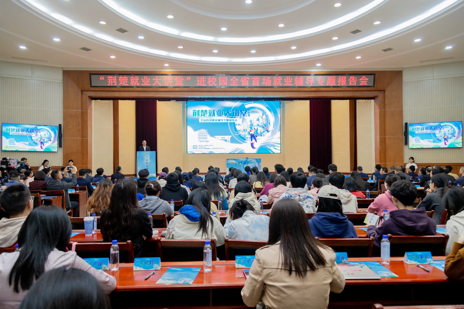 荆楚大讲堂由湖北省人力资源和社会保障厅主办,我校联办,湖北省人才事业发展中心和湖北省劳动就业服务中心承办,是湖北省人力资源与社会保障厅全面启动基层就业进校园的首场活动。