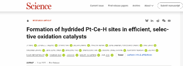 华大在线讯(通讯员 化轩)4月3日,化学学院郭彦炳教授团队与劳伦斯伯克利国家实验室Ji Su研究员、Miquel Salmeron教授、David Prendergast研究员课题组及大连理工大学刘家旭教授课题组合作在国际期刊《科学》(Science)在线发表了题为“高效、选择性氧化催化剂中氢化Pt-Ce-H位点的形成”(Formation of hydrided Pt-Ce-H sites in efficient, selective oxidation catalysts)的研究论文。