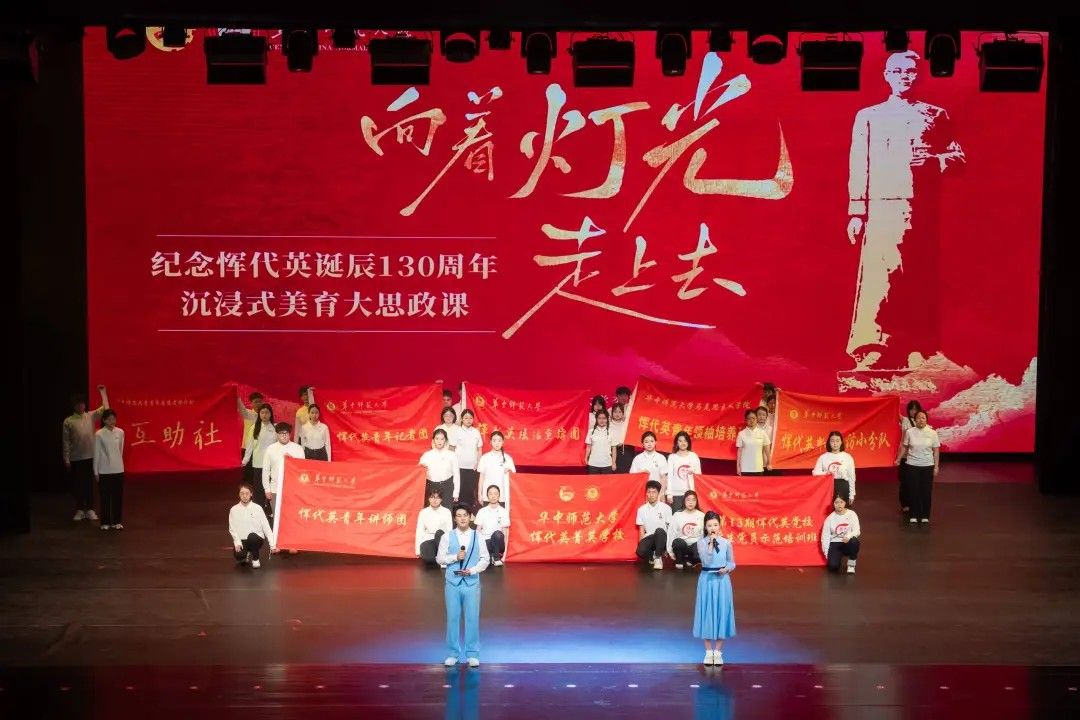 表彰大会后,师生们同上“向着灯光走上去”——纪念恽代英诞辰130周年沉浸式美育大思政课,回望峥嵘岁月,感悟恽代英精神的伟大力量。该美育大思政课由校团委组织编排、新闻传播学院白嗣新老师编导,旨在激励广大青年传承红色基因,挺膺担当、奋勇向前。
